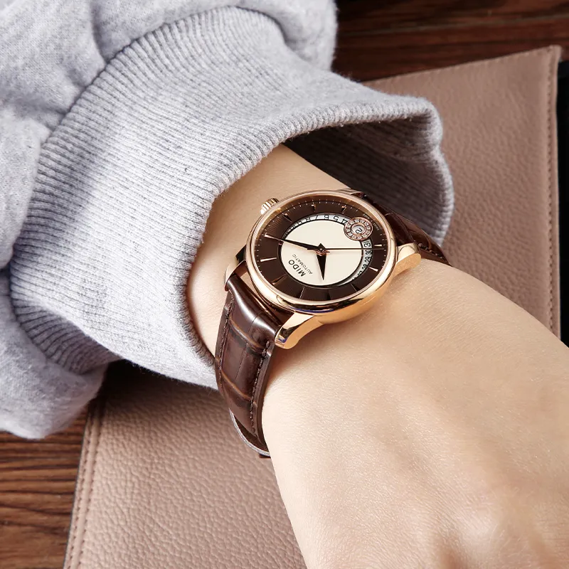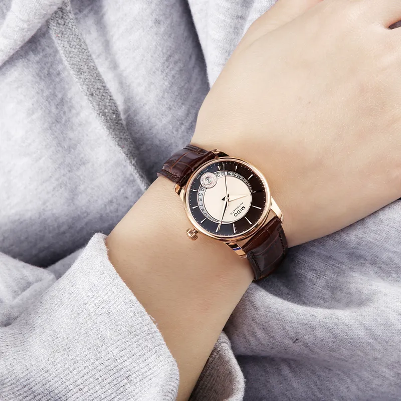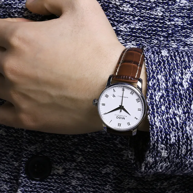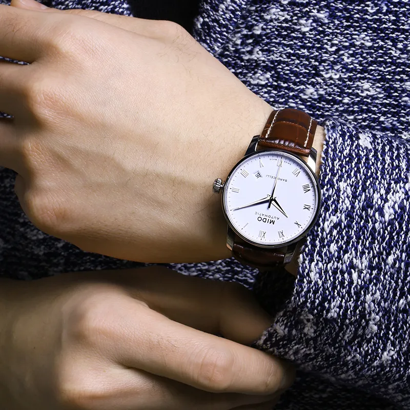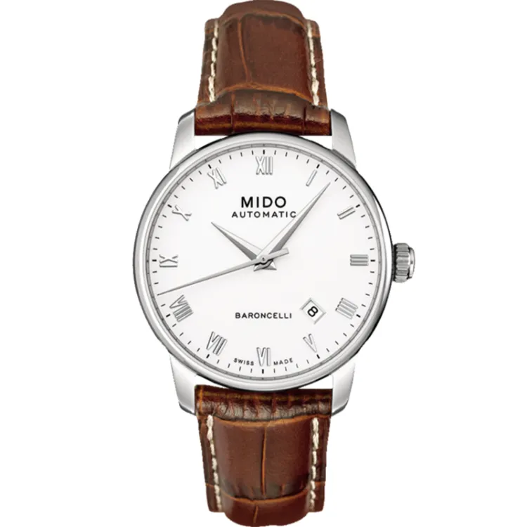 Mido Baroncelli Автоматический Механический Механизм Унисекс Часы 38 мм Белый Циферблат Корпус из Нержавеющей Стали Кожаный Ремешок