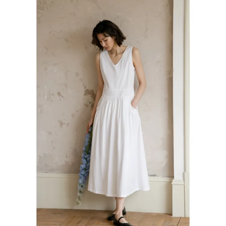 Migu Без рукавов Платье Женское Белое