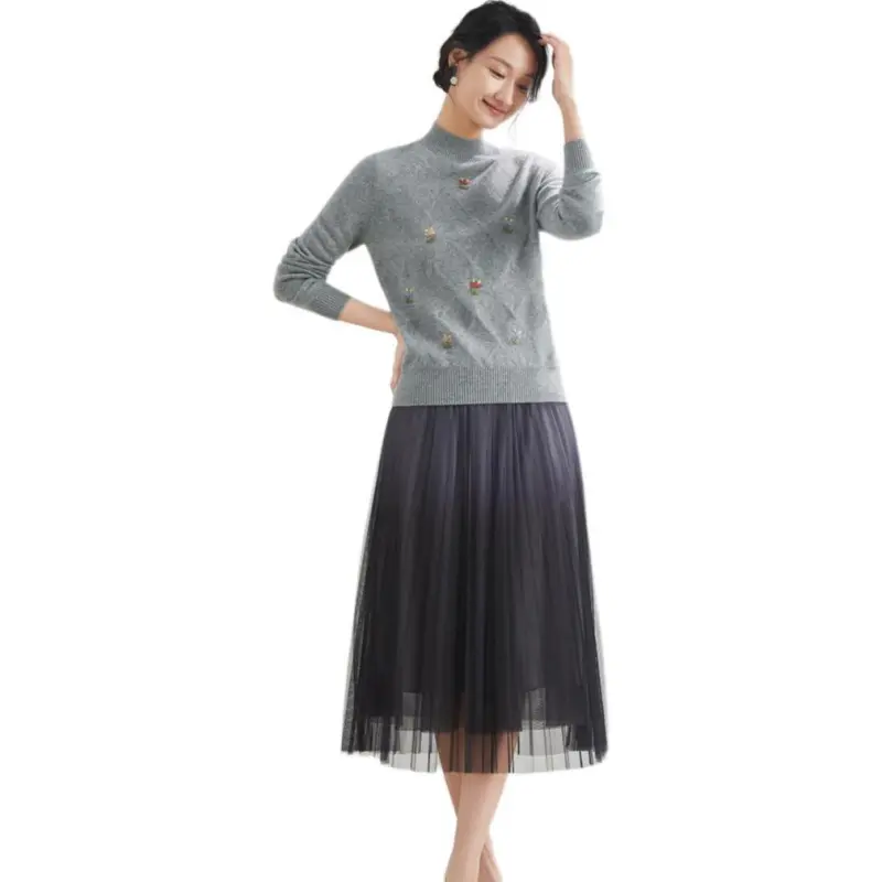 MIHUANG Кашемир Свитер Женский Средний Серый