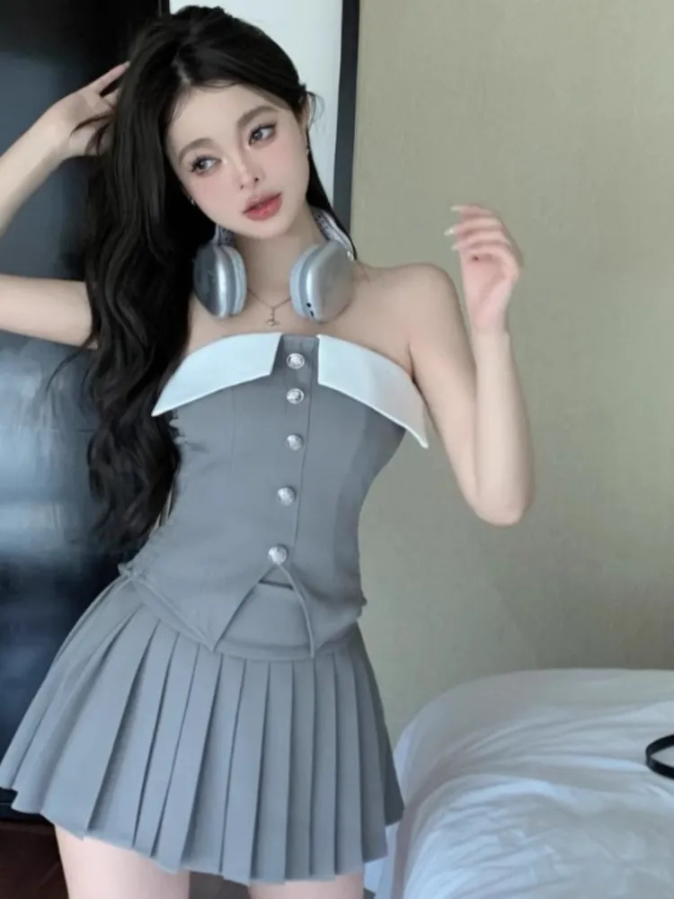 Пальто + Без бретелей Топ + Юбка