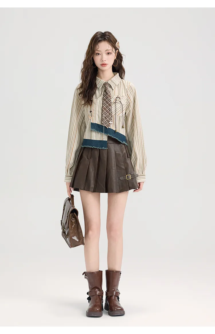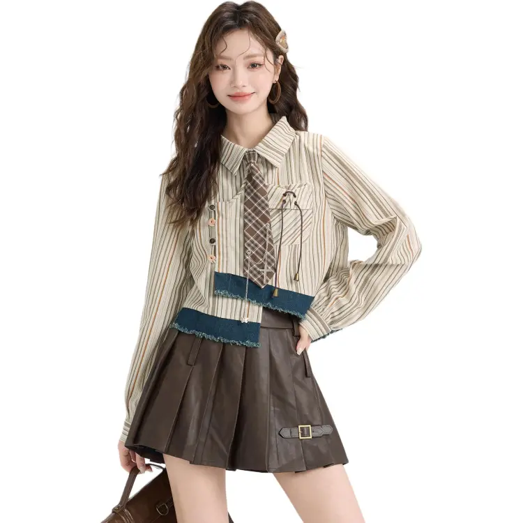 MILING Коричневый Двухкомпонентный Комплект для Школьниц с Юбкой