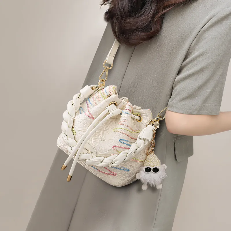 MILLIE'S Ткань Сумка-ведро Через плечо Одно плечо Сумка Обычная Женская Экрю