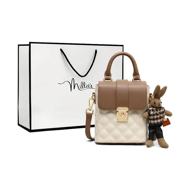MILLIE'S Сумка из синтетической кожи с коровьей кожей через плечо маленькая белая и кофейного цвета