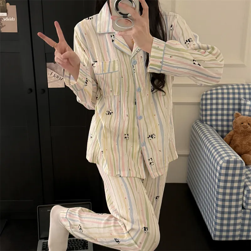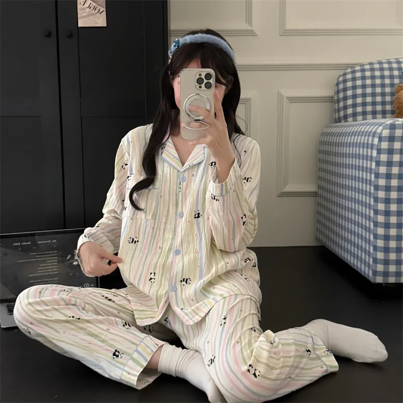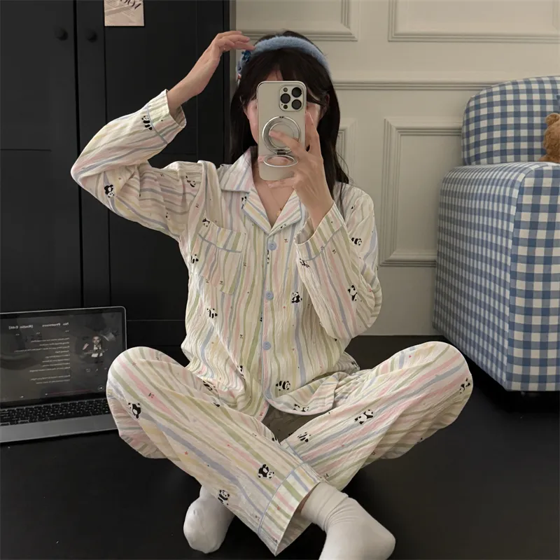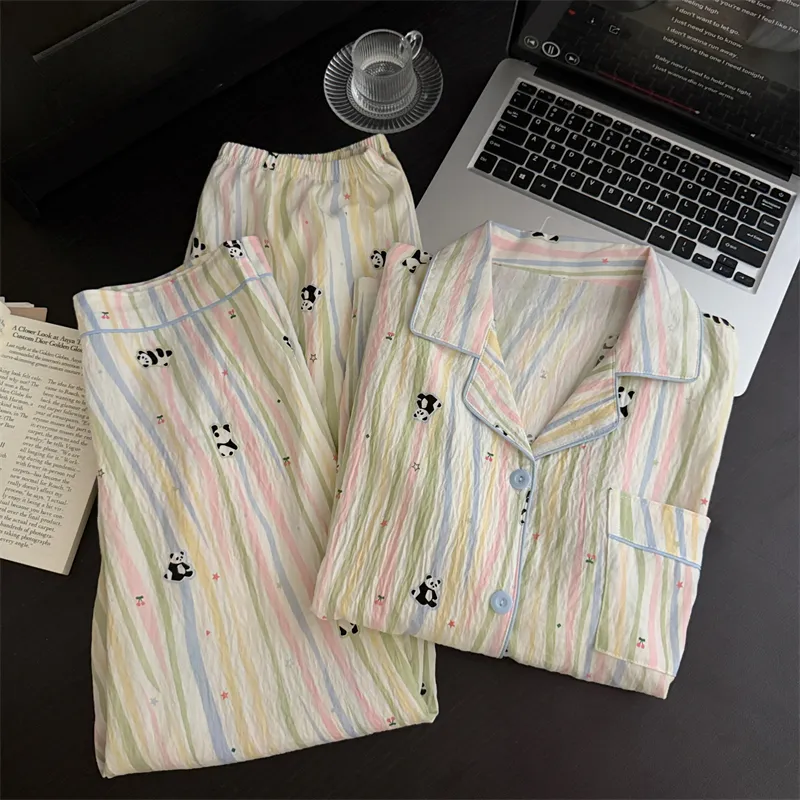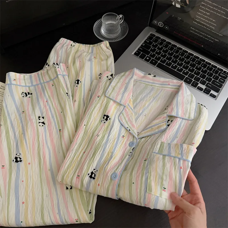 MIMOSA CHUR Полосатый Панда Женские Пижамные Комплекты