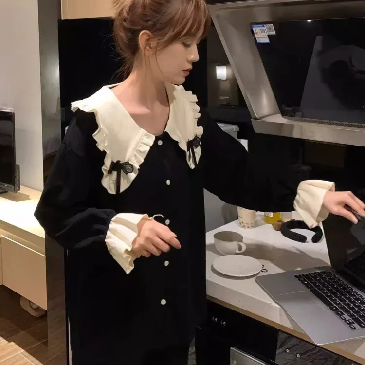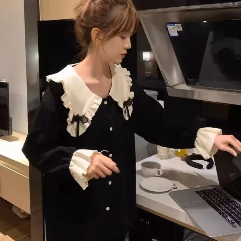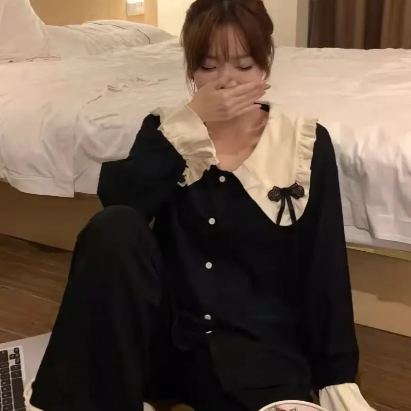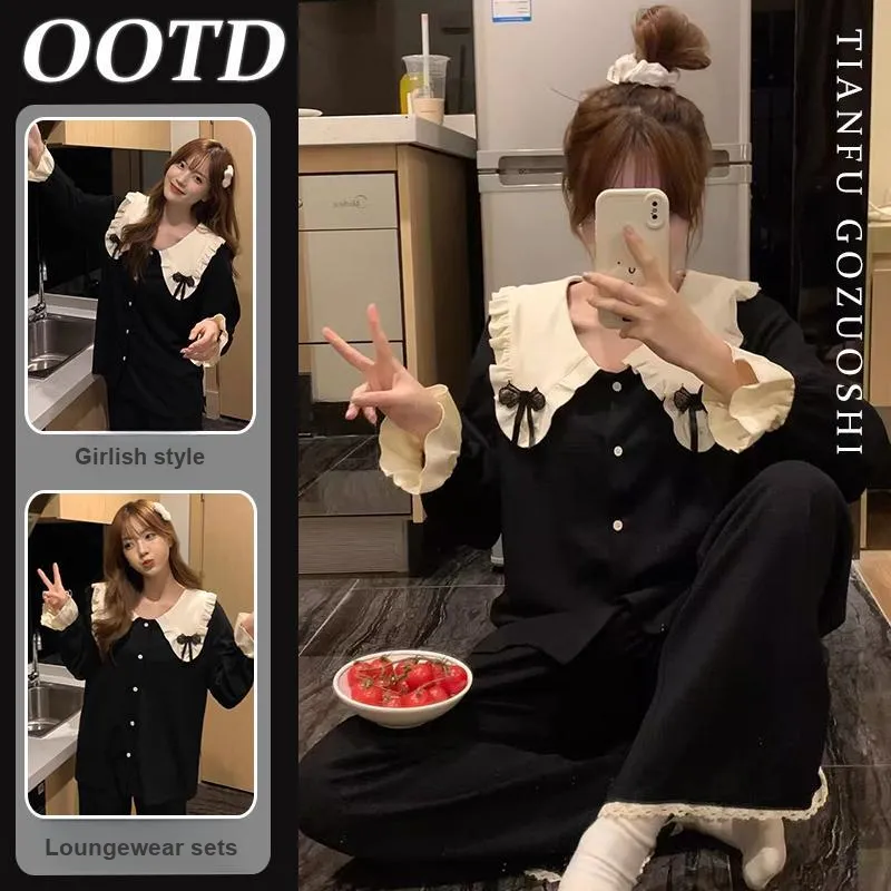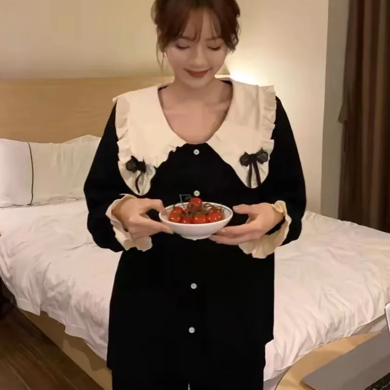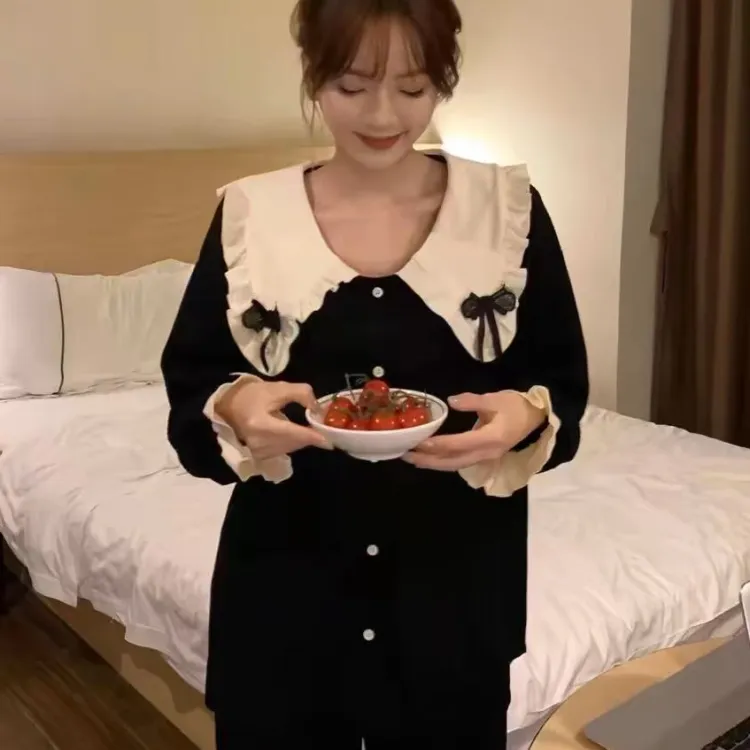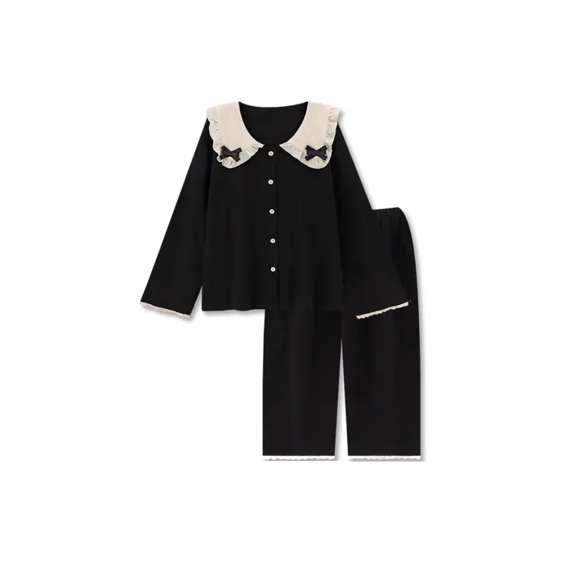 MIMOSA CHUR Peter Pan Воротник Черный Бант Женские Пижамные Комплекты