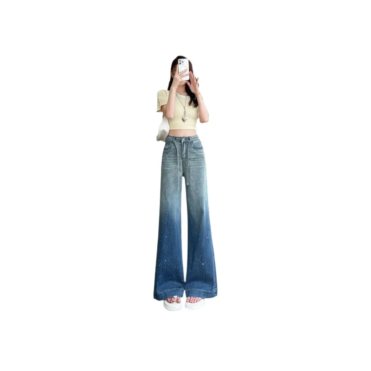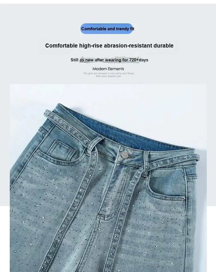 Светло-синие штаны с бриллиантами
