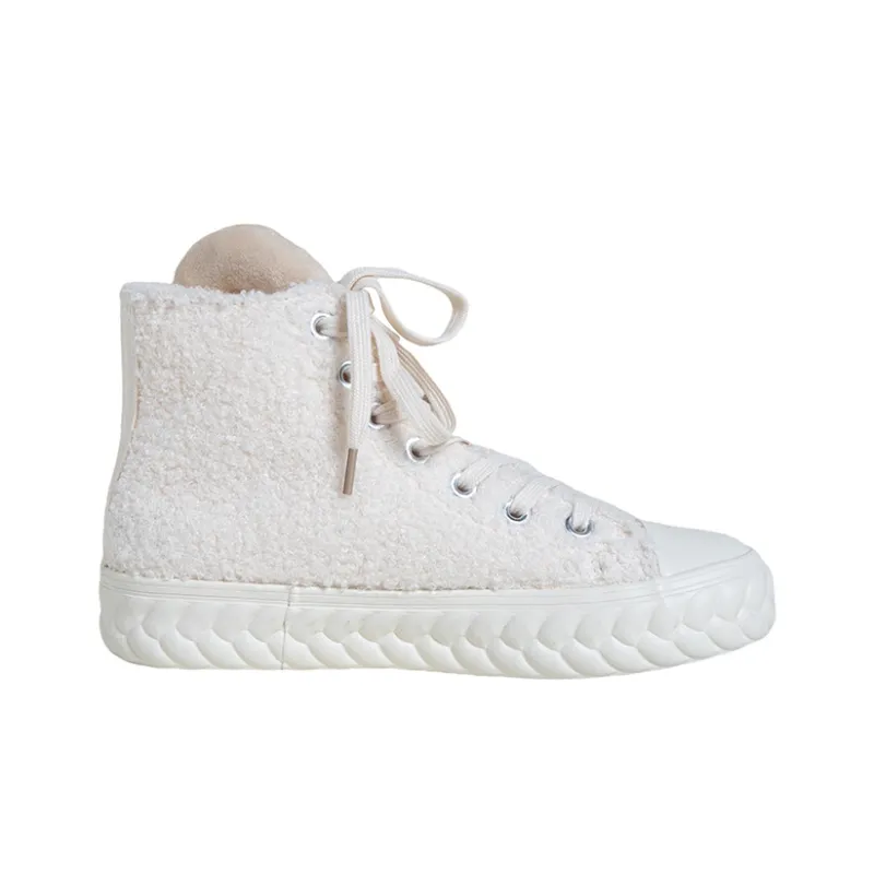MINGKUANG Уличный Необычный Теплоизоляционный Коробка Резистентный к Сдавлению и Износу Высокий Топ Скейтборд Кроссовки Женские Экрю