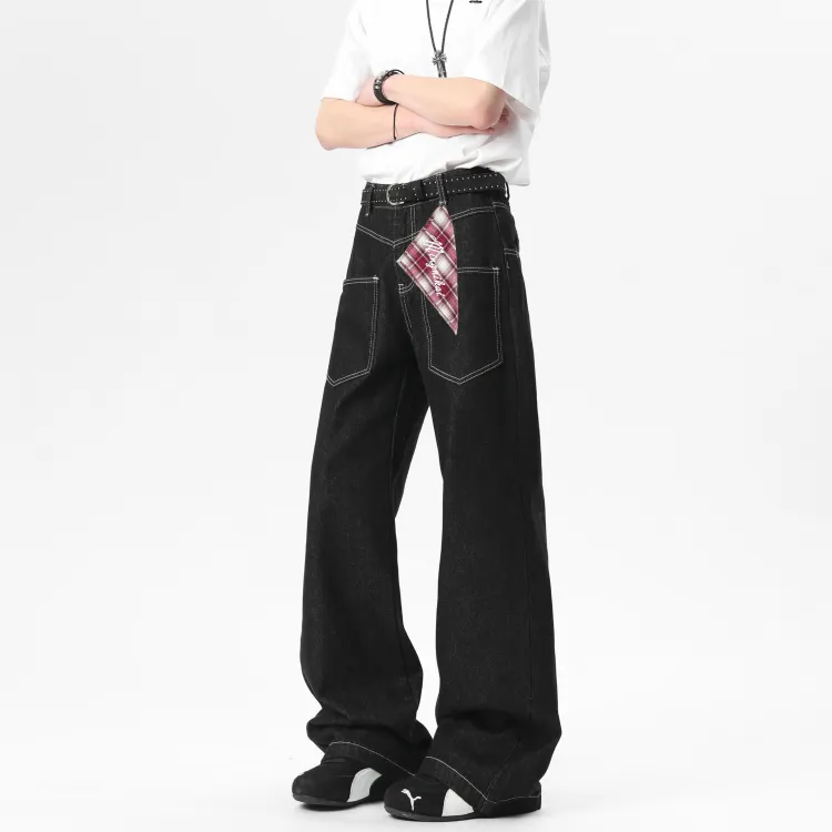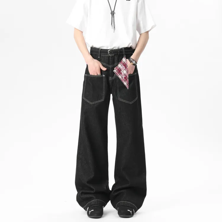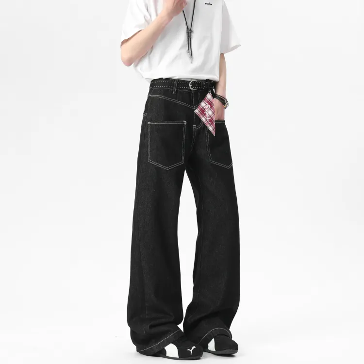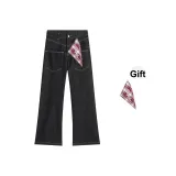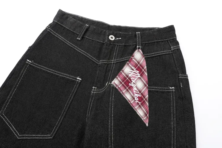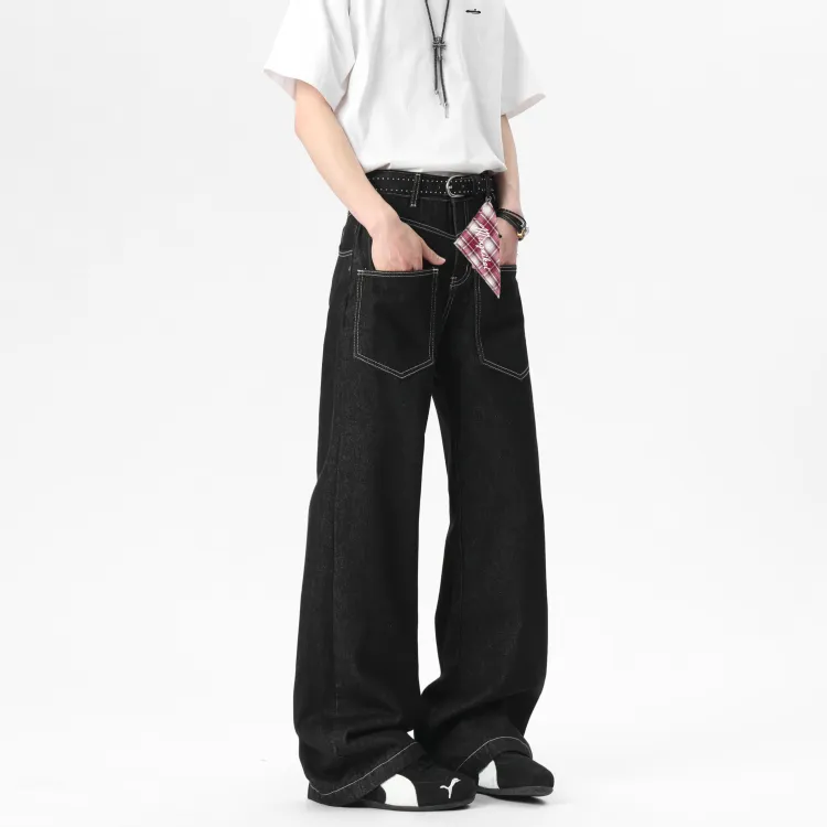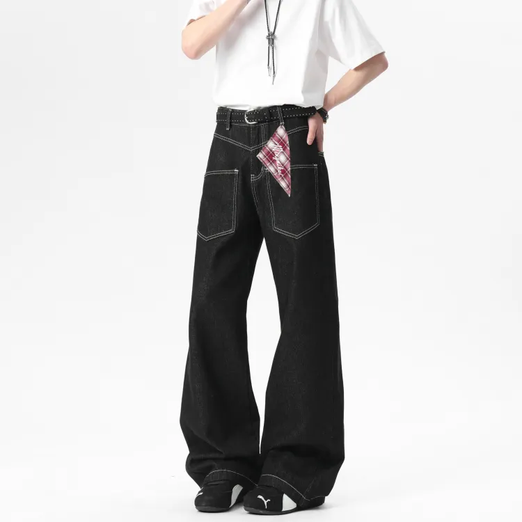 MINGNIKAI Оригинальный джинсовый черный [в комплекте с квадратным шарфом] унисекс джинсы