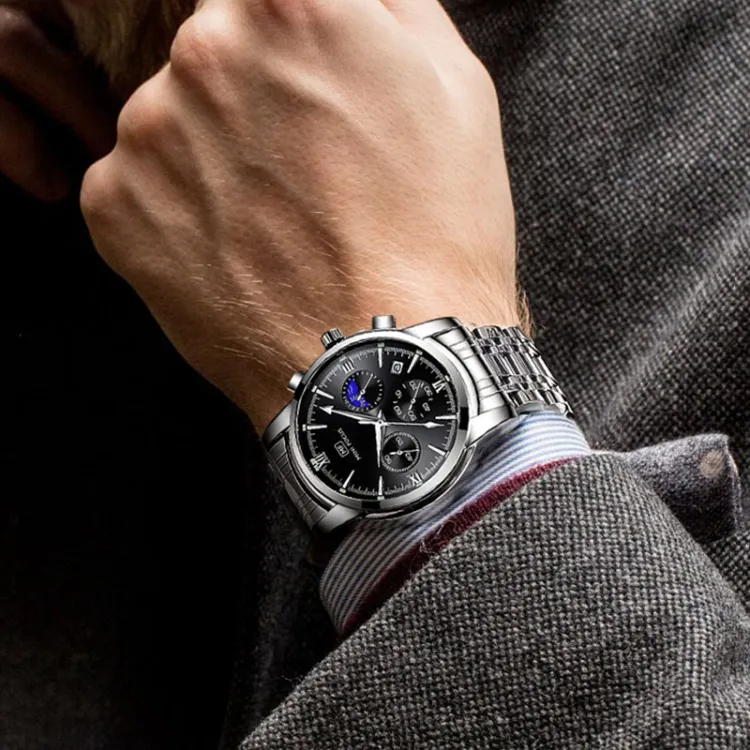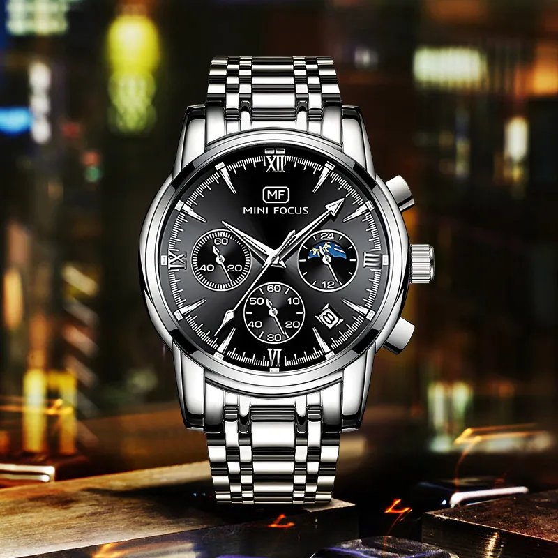 MF0479G-MF0486L Серебряный корпус Черный Стальной Черный ремешок