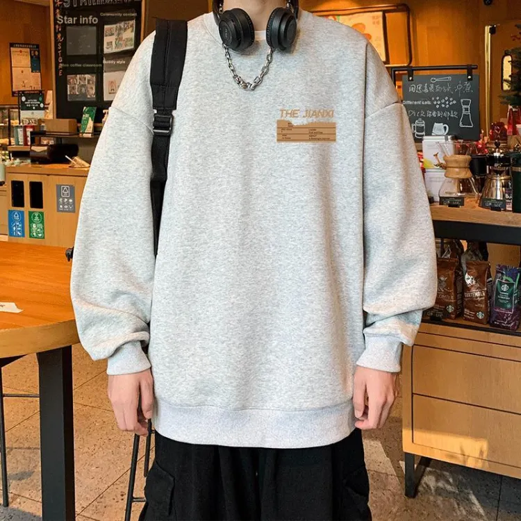 Светло-серый свитшот с круглым вырезом (тонкий) - логотип в виде зигзага (маленький логотип)