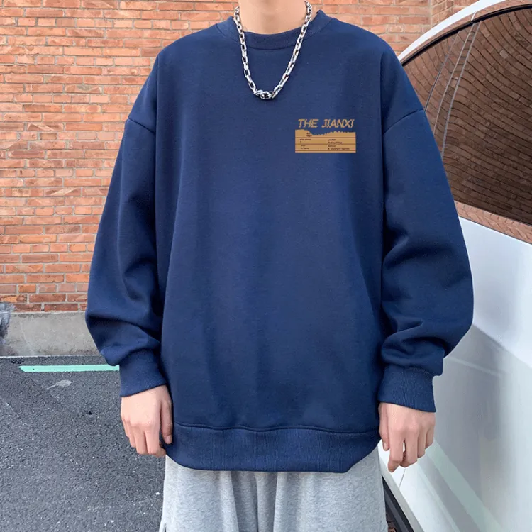Темно-синий свитшот с круглым вырезом (тонкий) - логотип в виде зубчатой линии (маленький логотип)