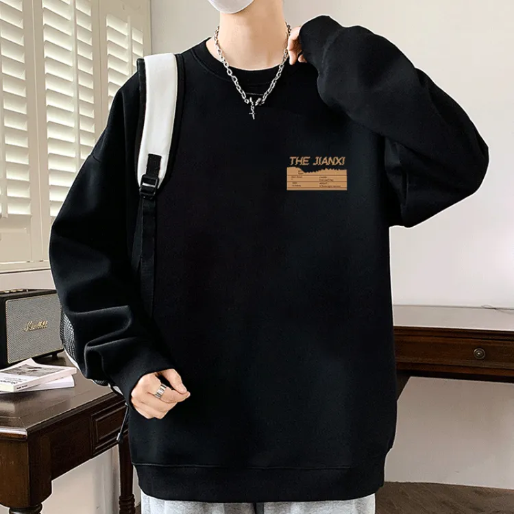 Черный свитшот с круглым вырезом (тонкий) - логотип в виде зигзага (маленький логотип)