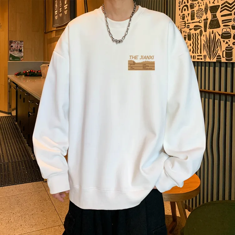 Белый свитшот с круглым вырезом (тонкий) - логотип в виде зигзага (маленький логотип)