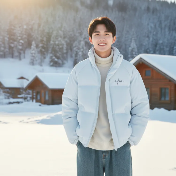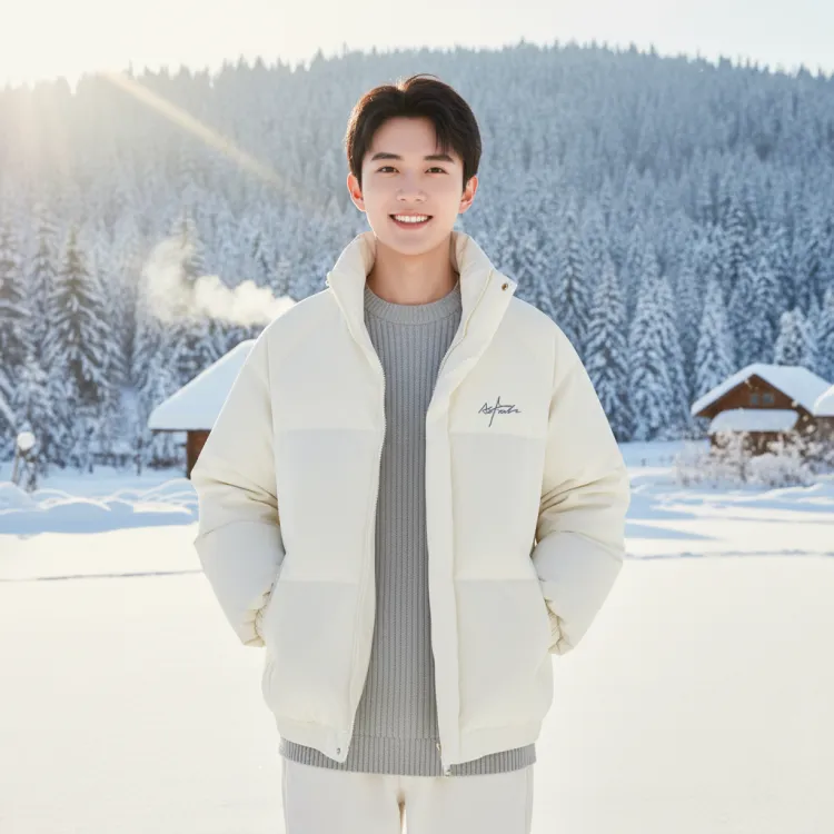 [Воротник-стойка с наполнителем] Белый (Ma Pen End Light and Shadow Логотип на груди)