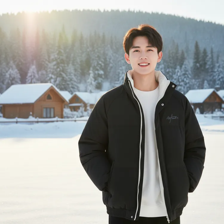 [Воротник-стойка с наполнителем] Свет и Тень Логотип на груди в Светло-синем (Ma Pen End)