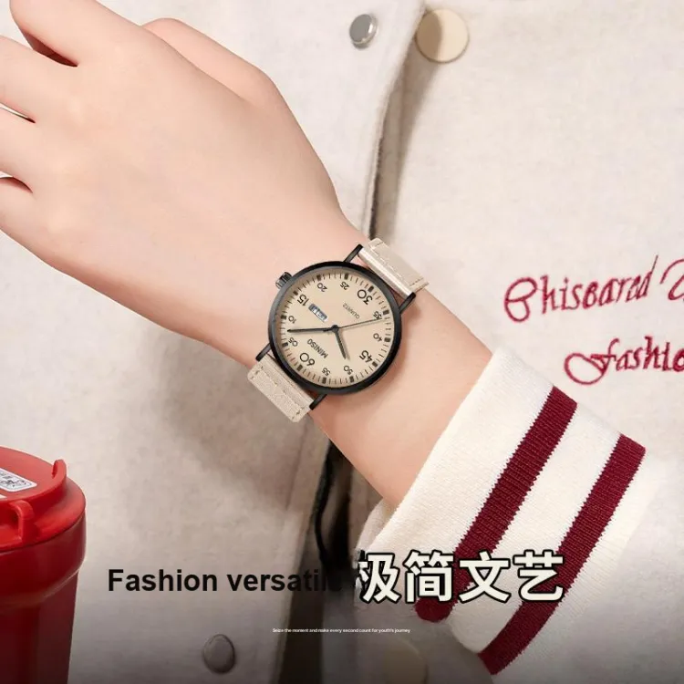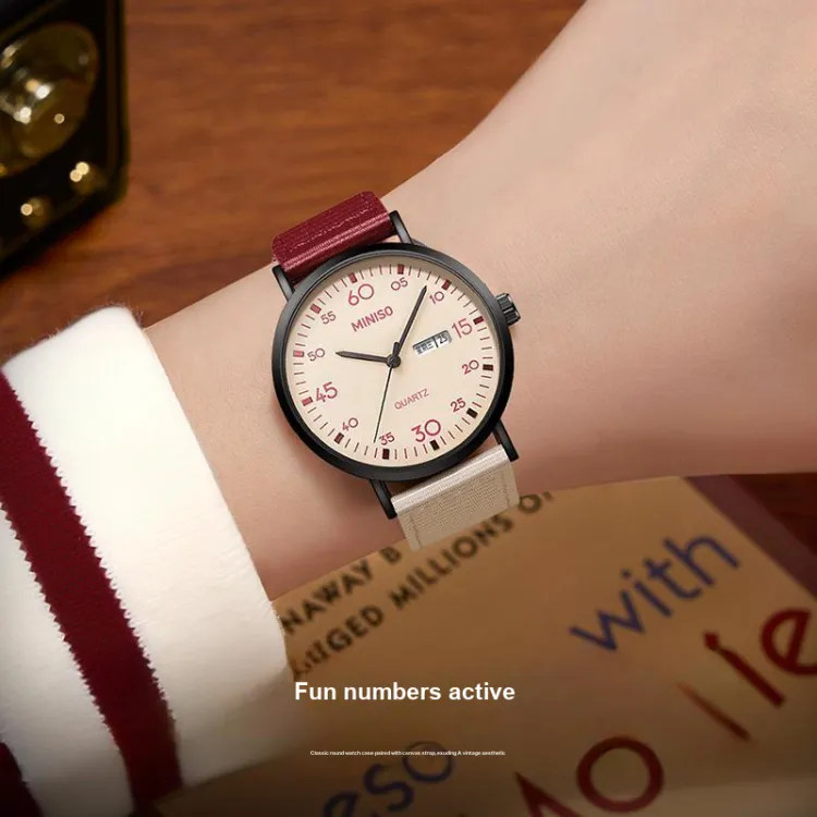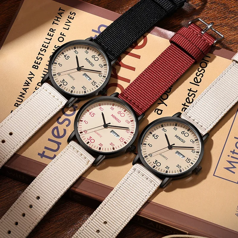 Miniso Lightweight Fashion Collection Кварцевый механизм холст ремешок часы унисекс бежевый циферблат