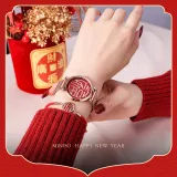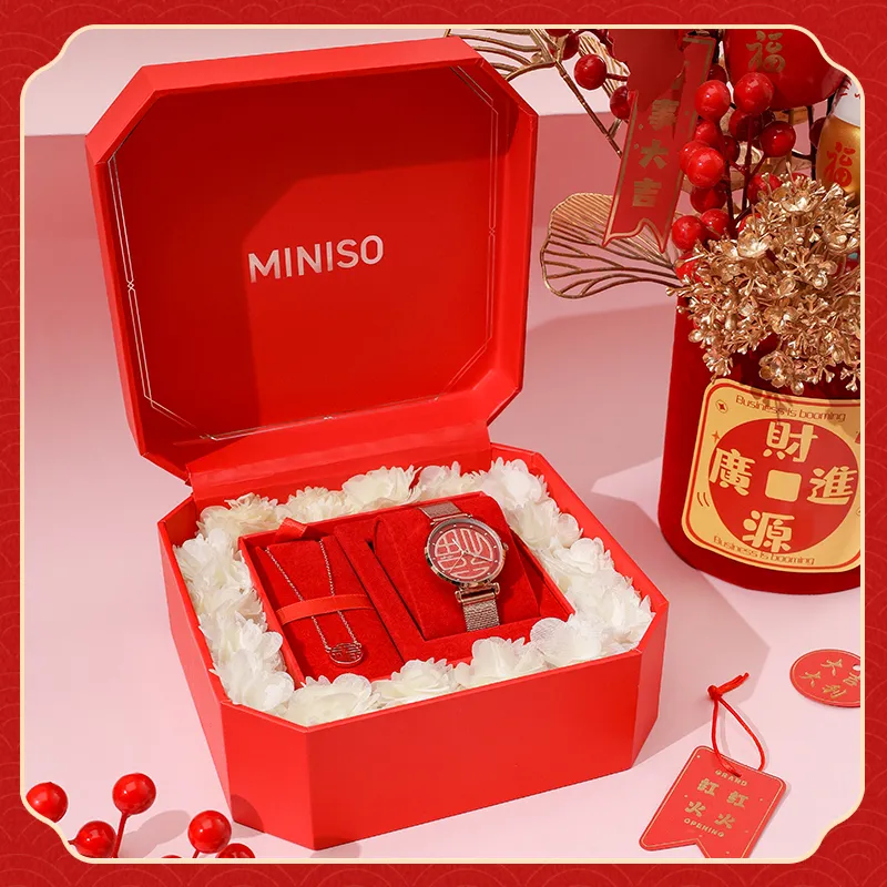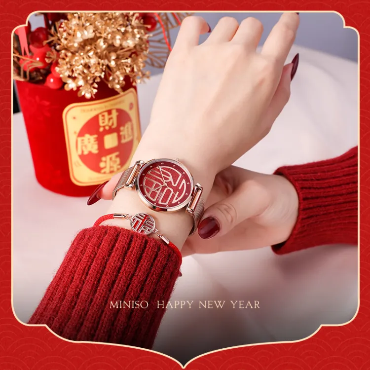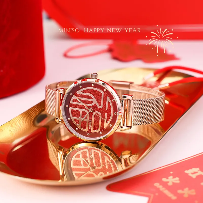 Miniso New Year Limited Edition Wrist Watch Кварцевый механизм Металлический ремешок Часы Женские Красный циферблат часов