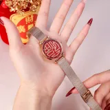 Циферблат Цвет:Китайский Красный - Сетчатый Ремешок [Кисточка Браслет + Коробка с Вечными Цветами]