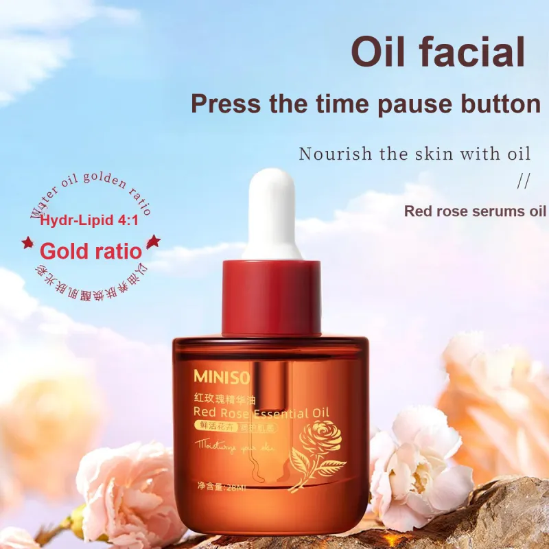 Miniso Розово-красный Сыворотка Масло Увлажнение Антиоксидант Сужение Поров Укрепление Увлажнение 28 мл бутылка