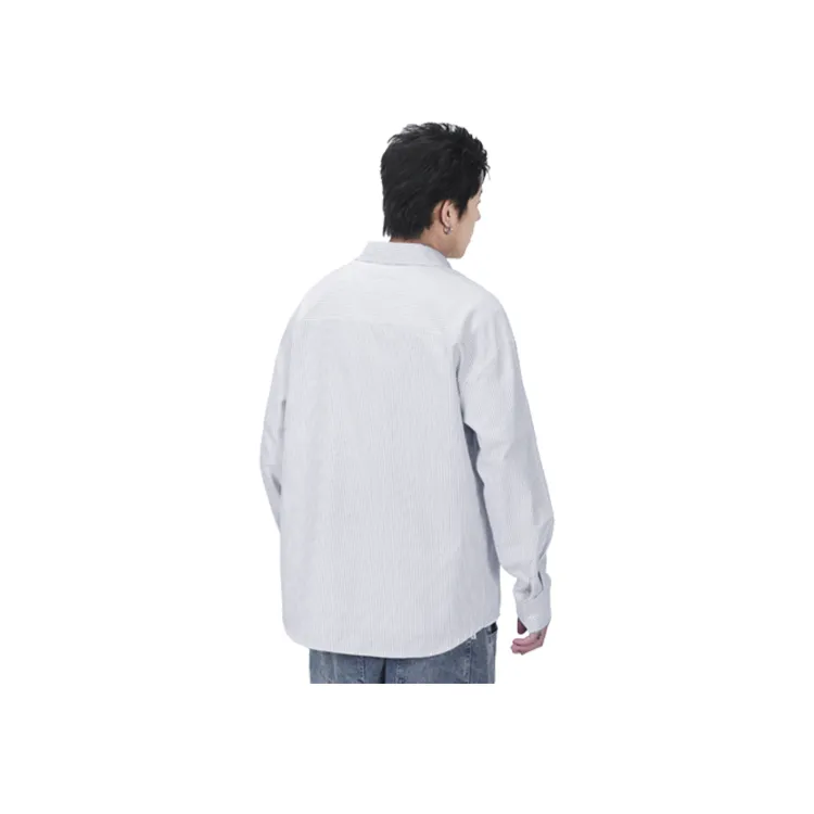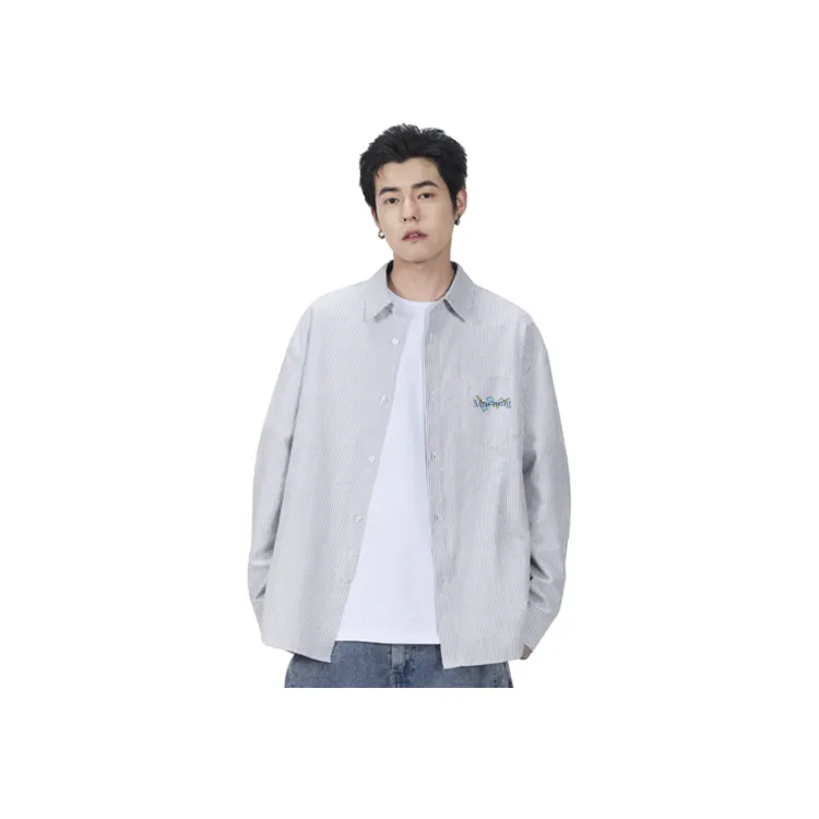 [Heavyweight Oxford] Серый Белый Полосы (Mk Синий Утро Язык цветов Логотип на груди)