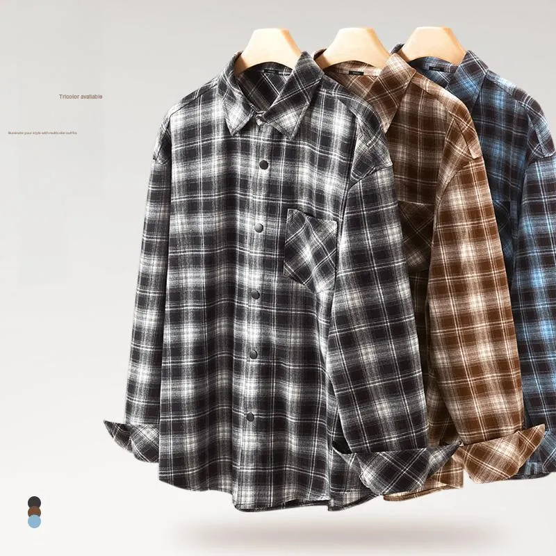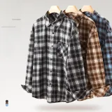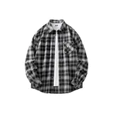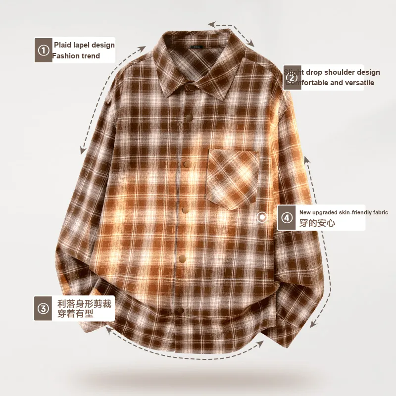 [Универсальный Свободный крой] Синий Кофейный Клетка (Логотип на груди Smile Wreath)