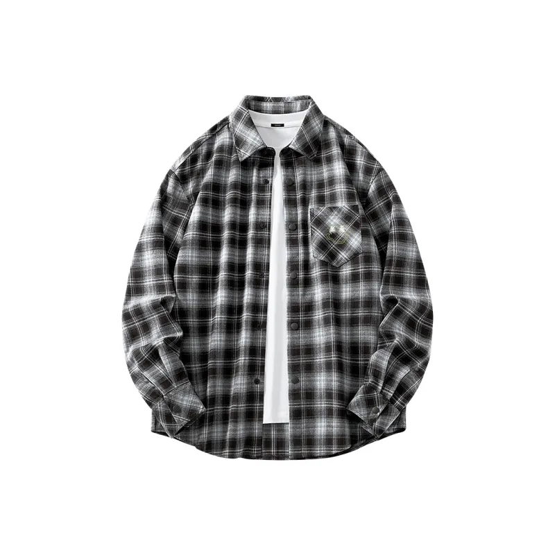 [Универсальный Свободный крой] Черный и белый в клетку (B Smile Wreath Логотип на груди)