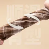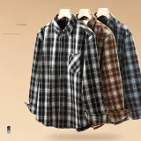 [Флисовая подкладка, термический] Бежевый, кофейный, клетка (M45, чернильный серый, улыбающееся лицо, низ, правая сторона, логотип B)