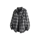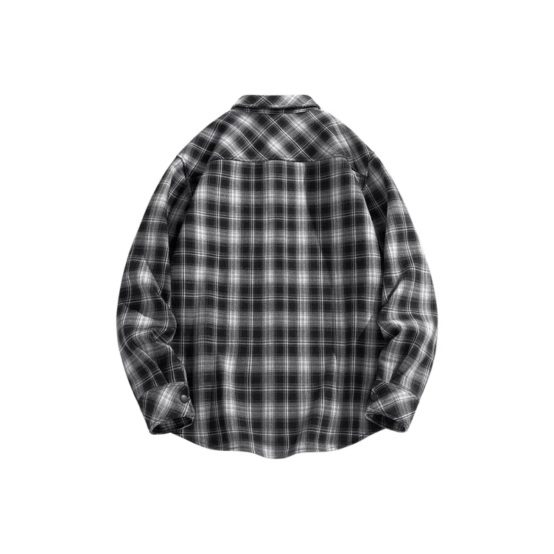 [Флисовая подкладка, термический] Черно-белая клетка (M45, чернильно-серый, улыбающееся лицо, низ, правая сторона, логотип B)