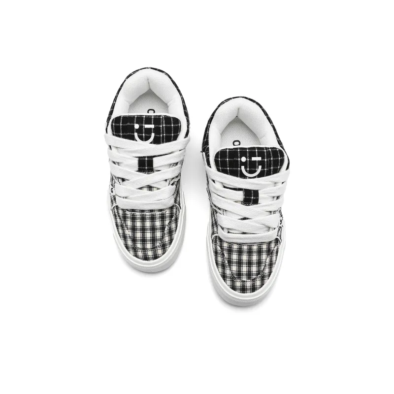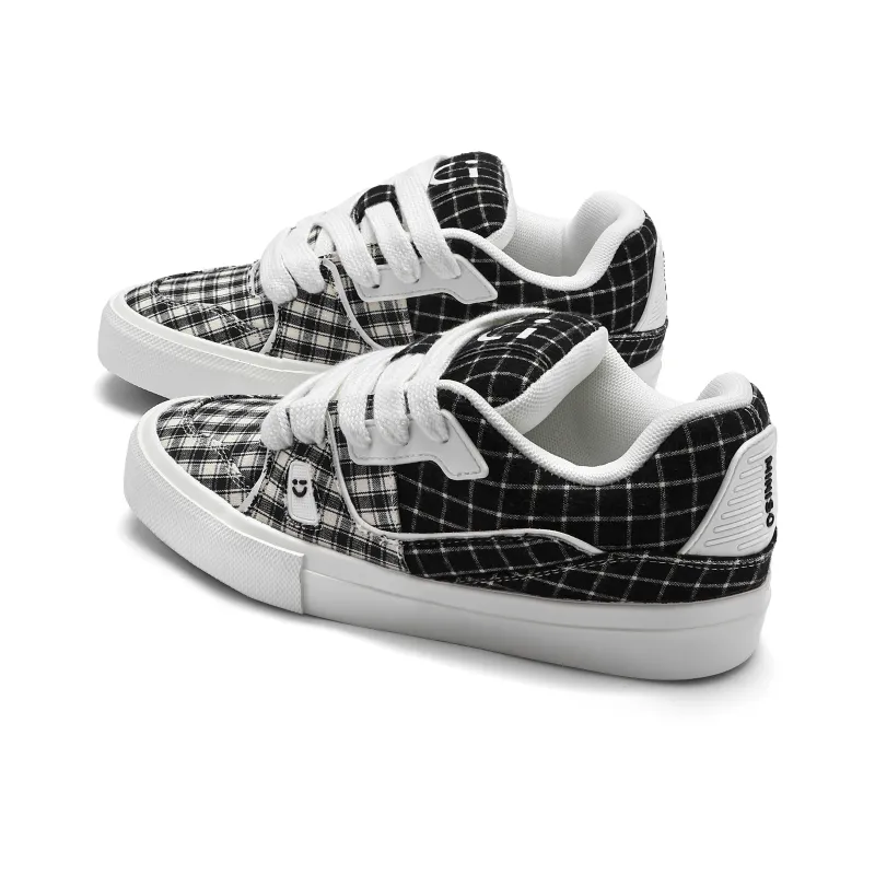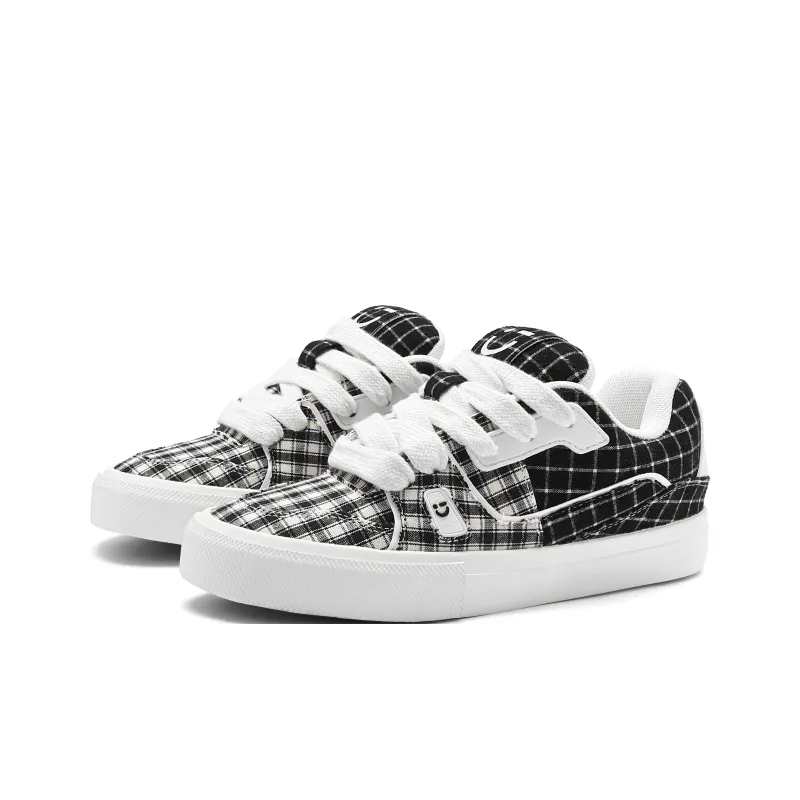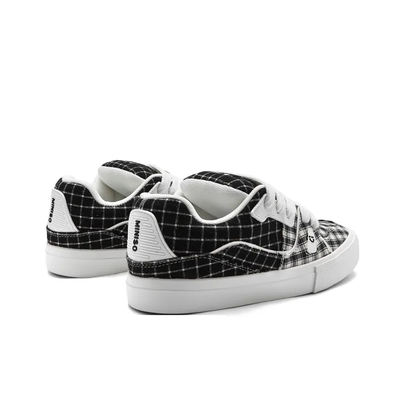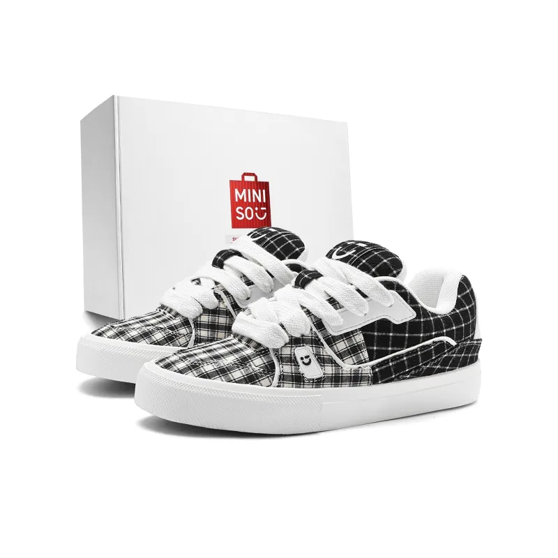 Miniso Скейтборд Кроссовки Низкие Топ Черный Белый Клетка Унисекс