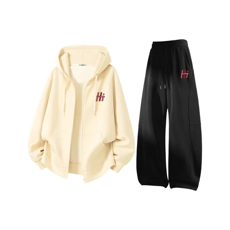 Комплект:Светлый бежевый (B Кленовый Pen Фирменный Логотип на груди) + Черный (B Кленовый Pen Фирменный Логотип на штанах)