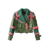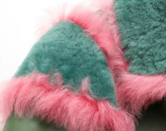 MINNANHUI Мех Женский Армейский Зеленый