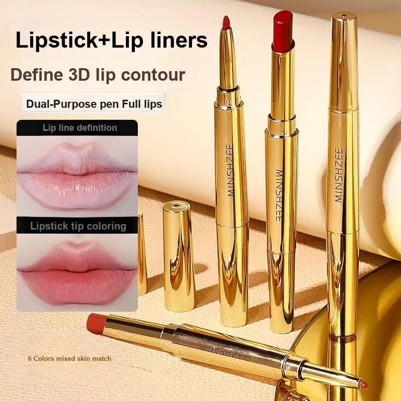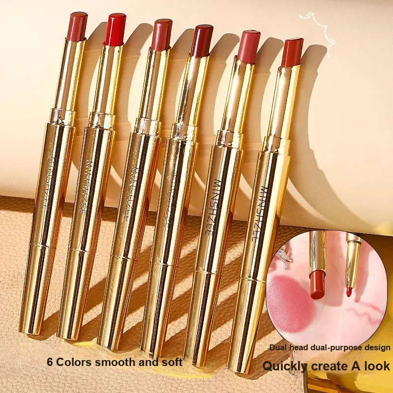 MINSHZEE Двойной кончик для губ Подкладка Помады Матовый Легко смешивается Долговечный Цвет лица TRANSFER PROOF Осветляющий 2г