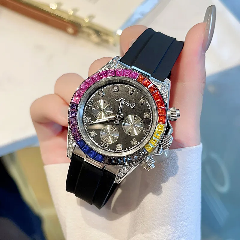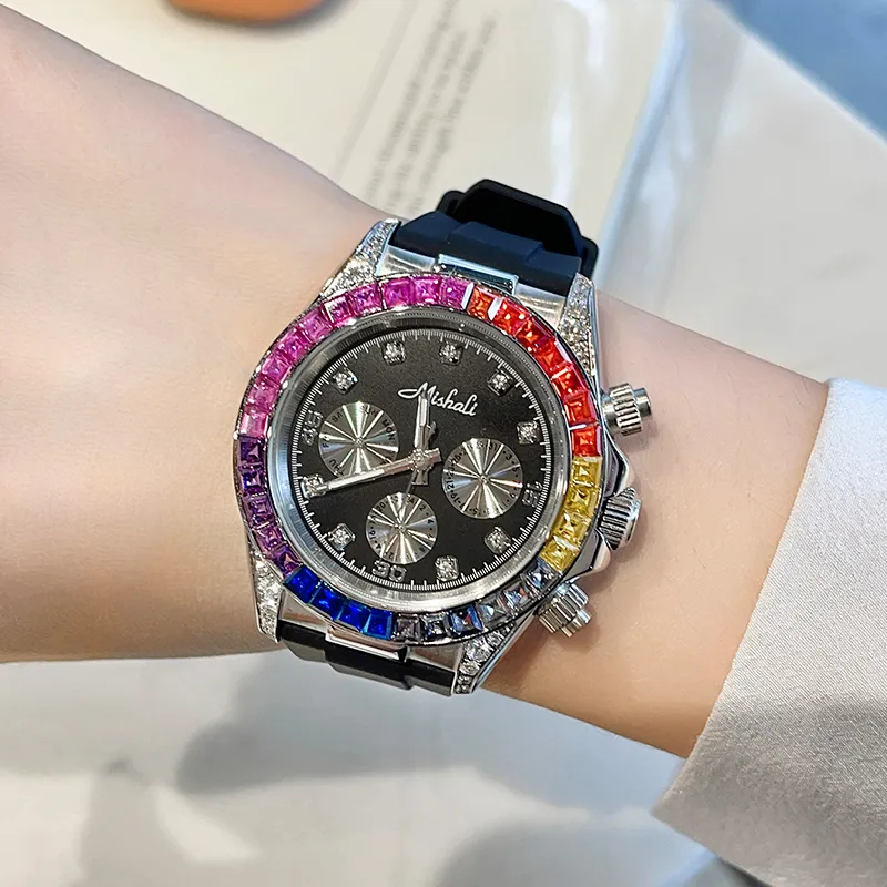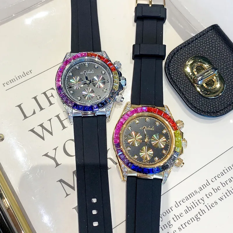 MISHALI Large Watch Dial Collection Кварцевый механизм Кожаный ремешок Часы Унисекс Черный циферблат
