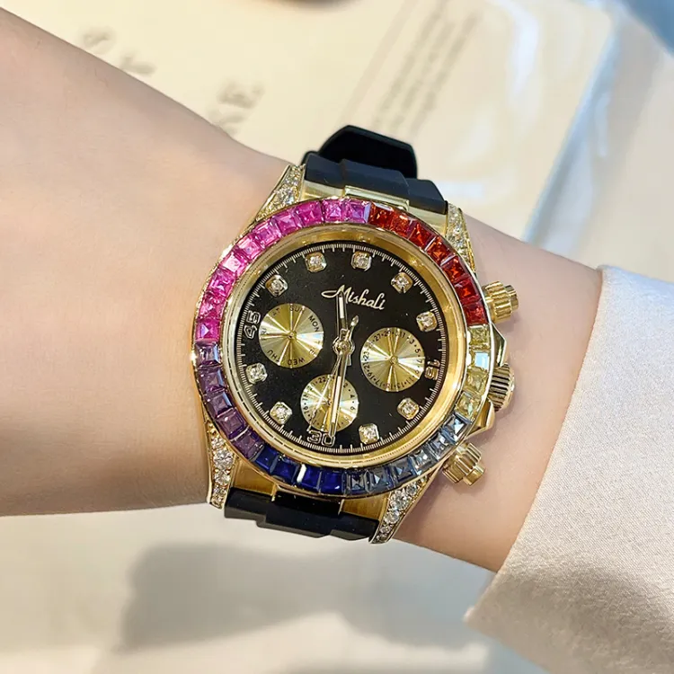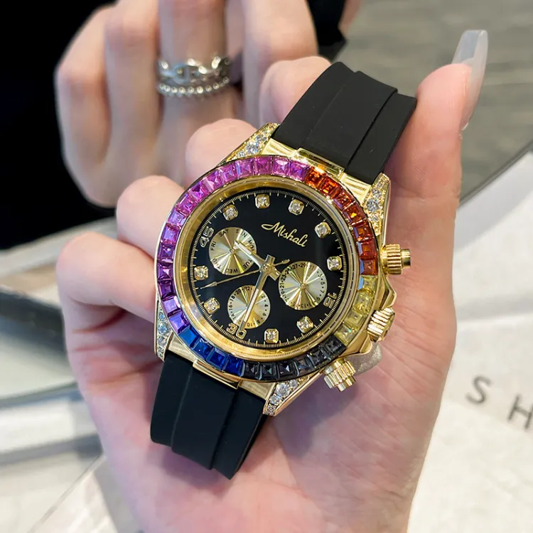 Золотой-Цветной горный хрусталь + Браслет с римскими цифрами, Коробка