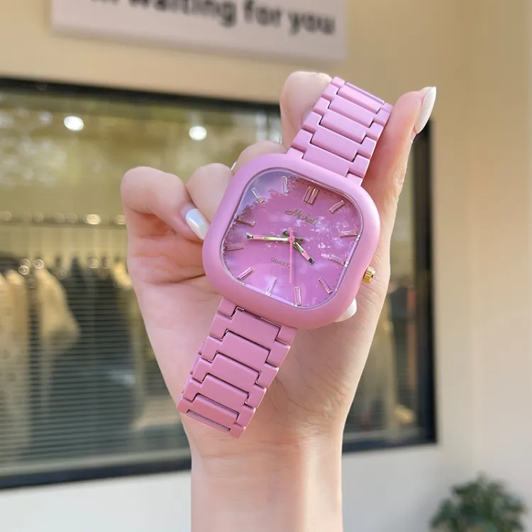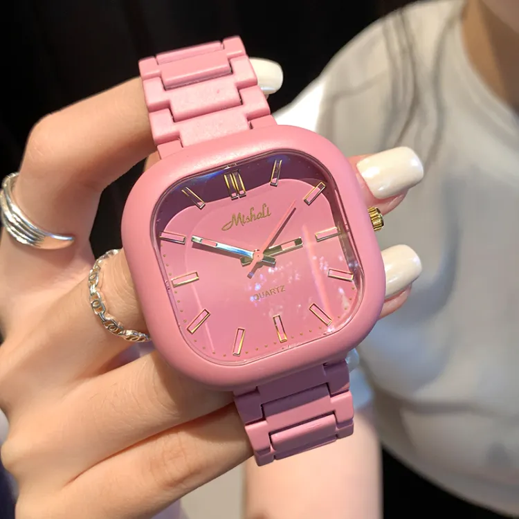 MISHALI Кварцевый механизм сплав ремешок женские часы розовый циферблат