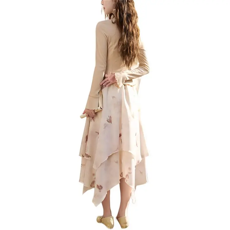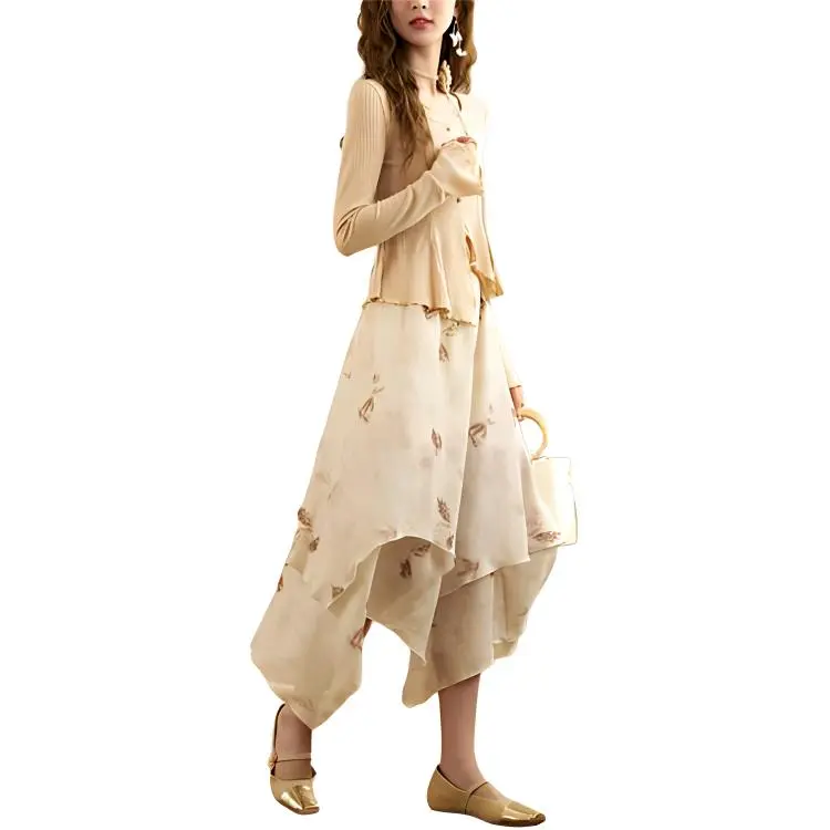 MISHOW Повседневная длинная юбка женская абрикосового цвета