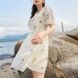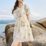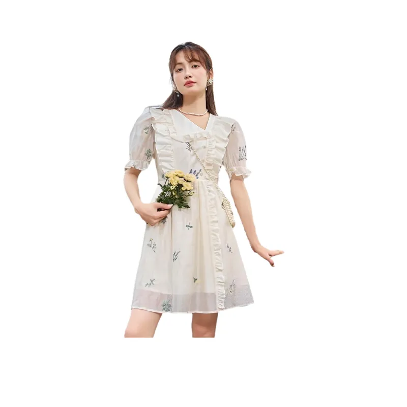 MISHOW Абрикос Женские Короткие Платья с Рукавами