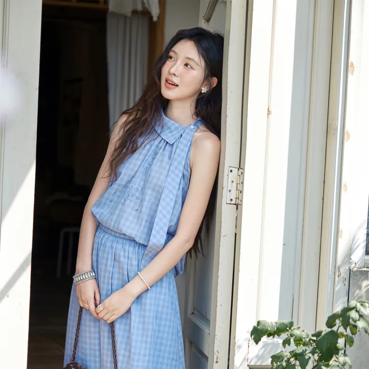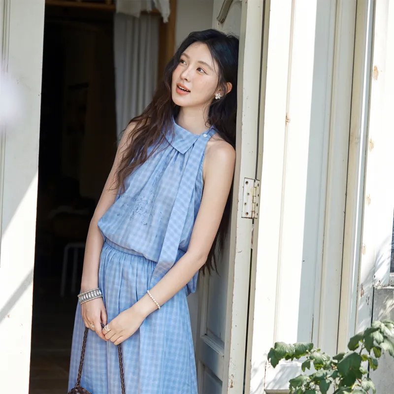 MISHOW Синяя клетка Женские Комплекты с юбкой