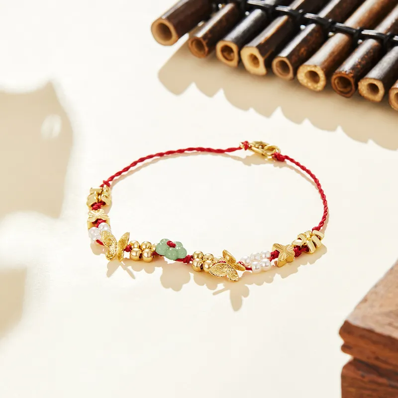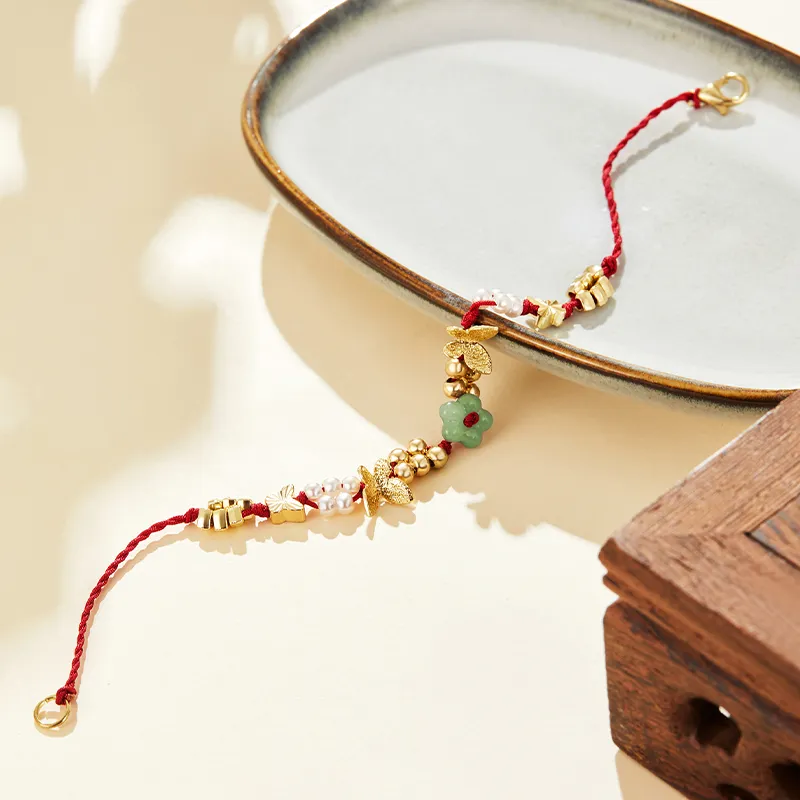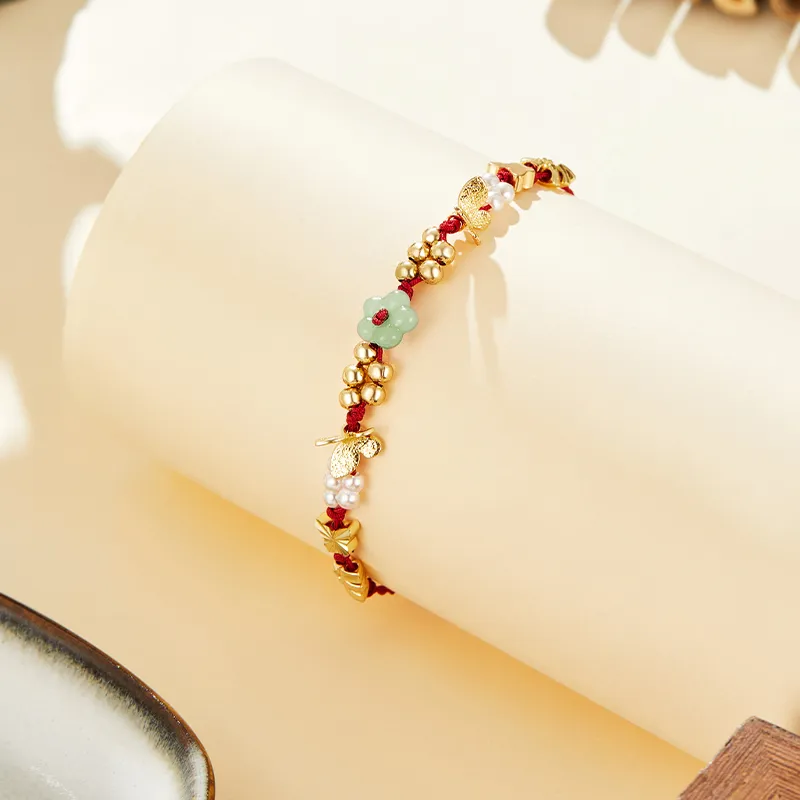 Misongma Красная нить Зодиакальный год Бургундский Сладкий стиль Маленький цветок Осветляющий Delicate Роскошь Элегантность Браслет Женские