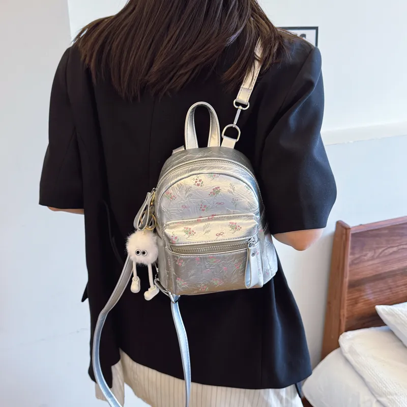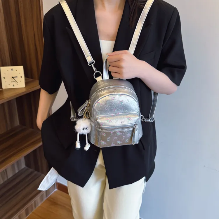 Miss Angel ПУ (полиуретан) Рюкзак Женские Экрю Серебристый Черный