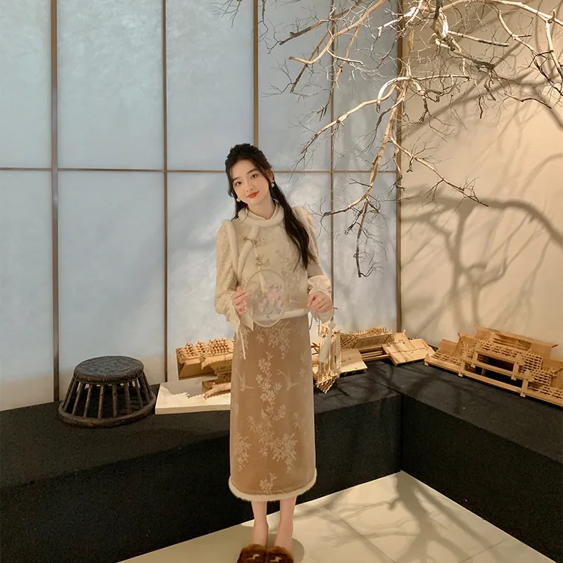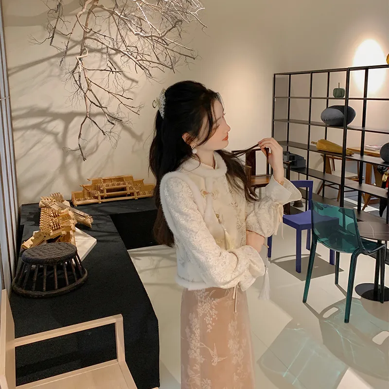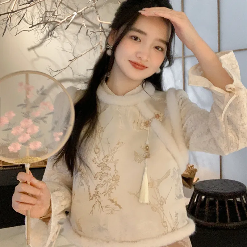 Miss Chipmunk Китайский стиль Осенний и Зимний Сатин Жаккард Жилет Женские