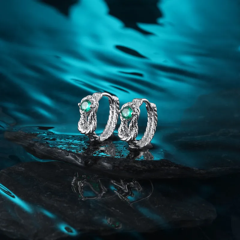 Стиль:Серьги-кольца с змеевидной тканью, вязаные, с цирконием