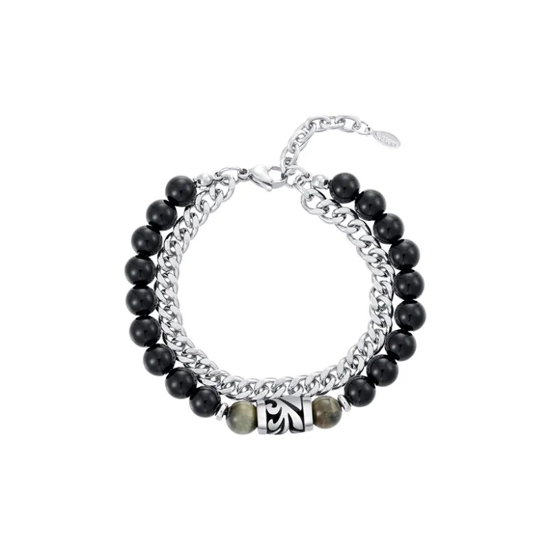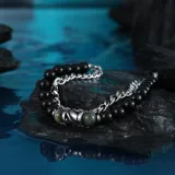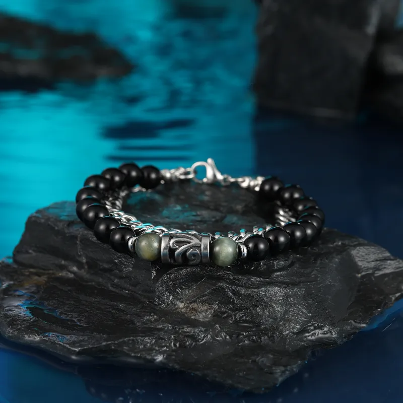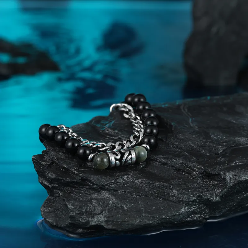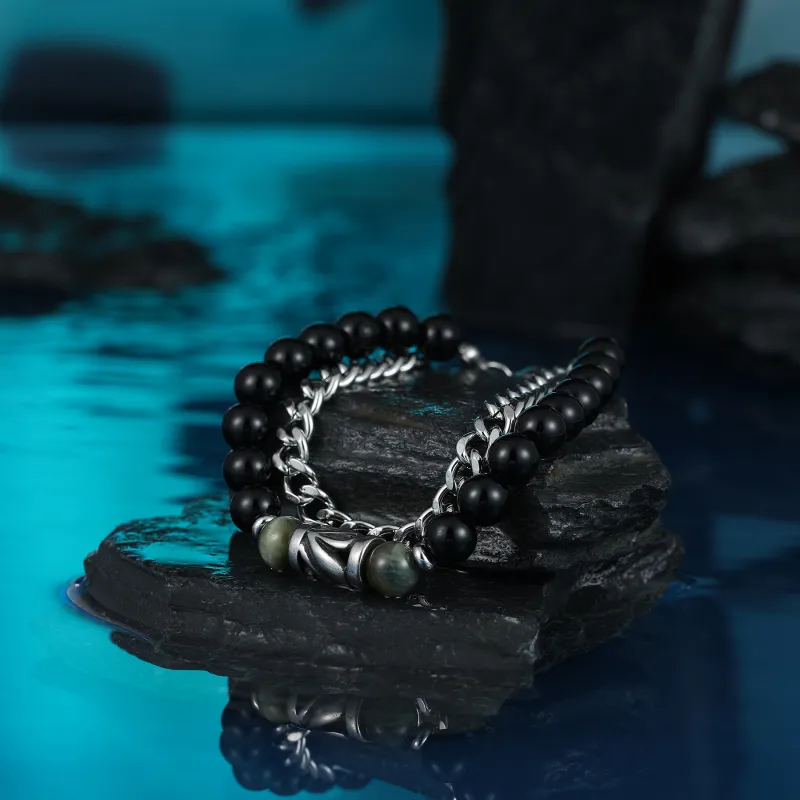 Стиль:Черный обсидиан, двойной, складной браслет