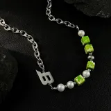 Зеленый, бусины, пэчворк, ожерелье