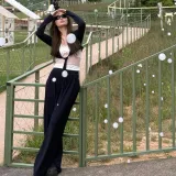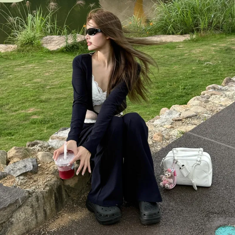 Цвет:Темно-синий синий повседневный комплект (кардиган + топ с бретелями + штаны)