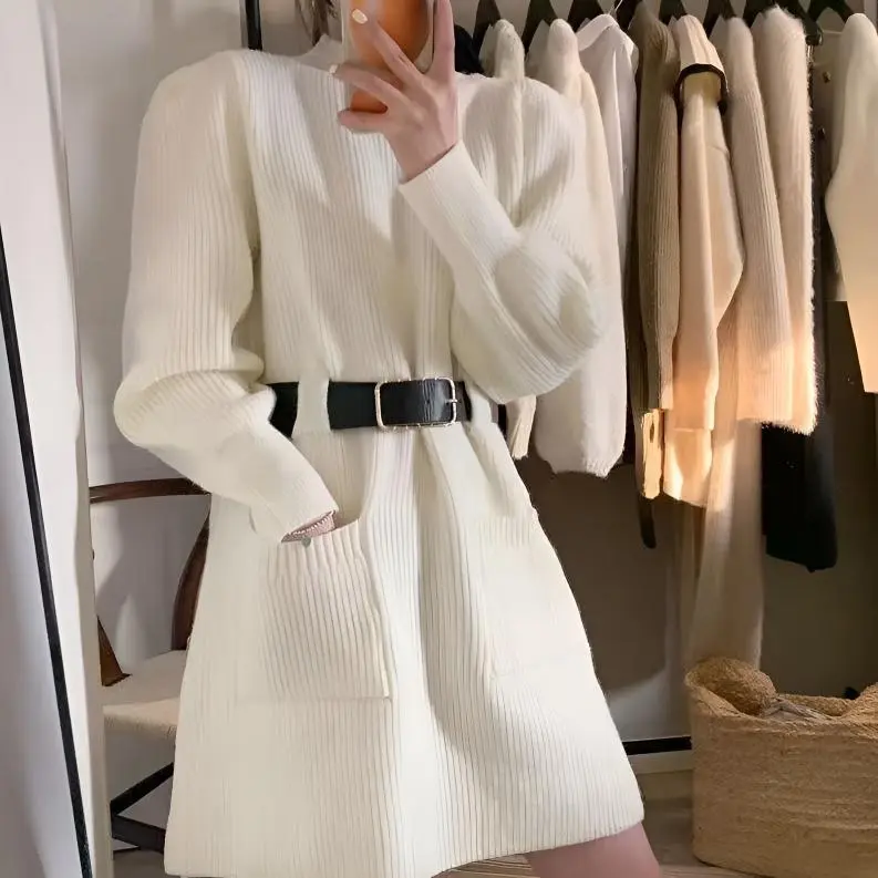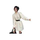 Цвет:Белое длинное платье-рубашка с длинными рукавами