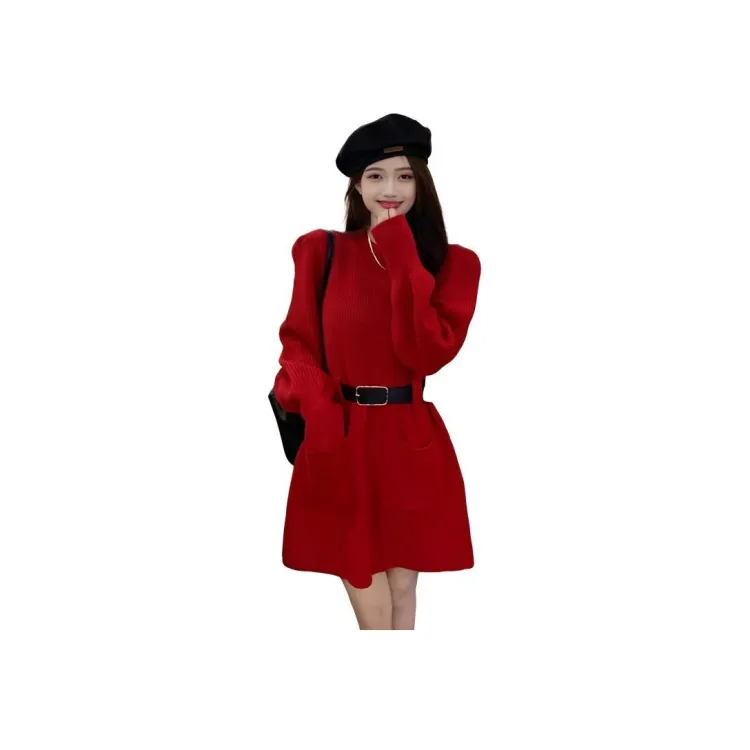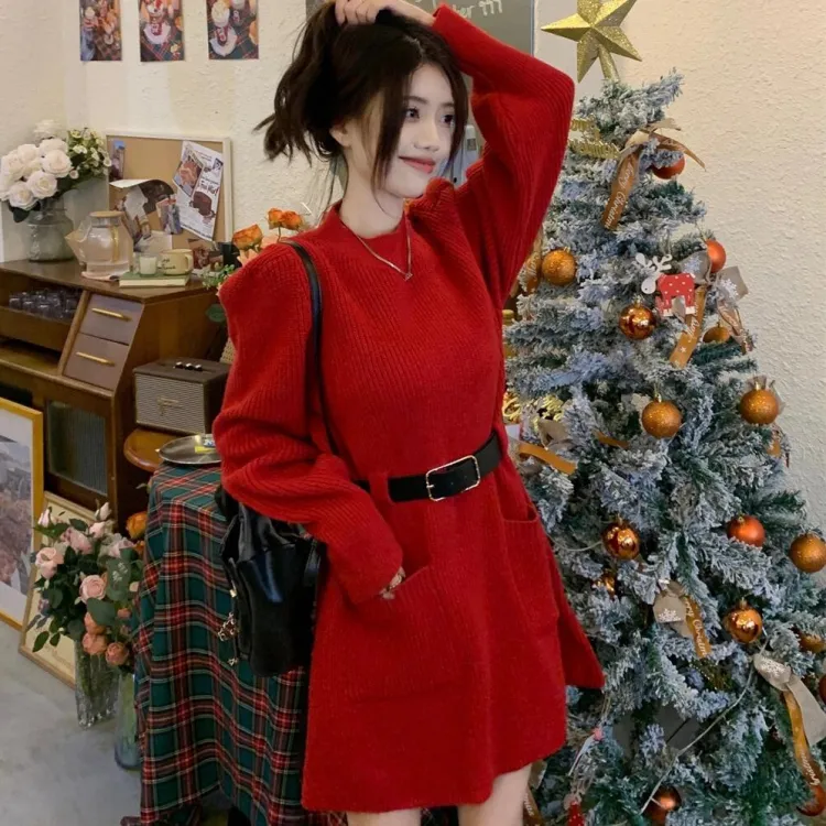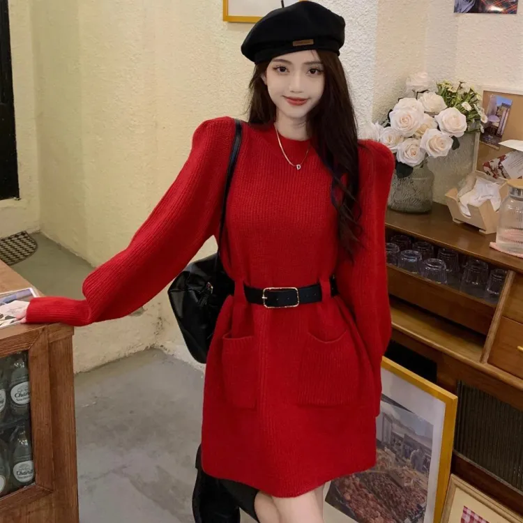 Красное платье с длинными рукавами