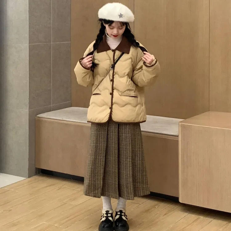 Хаки хлопковый пуховик