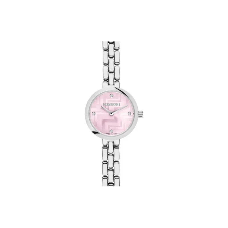 MISSONI Женские часы Кварцевый механизм Ремешок из нержавеющей стали 25 мм Розовый циферблат Часы