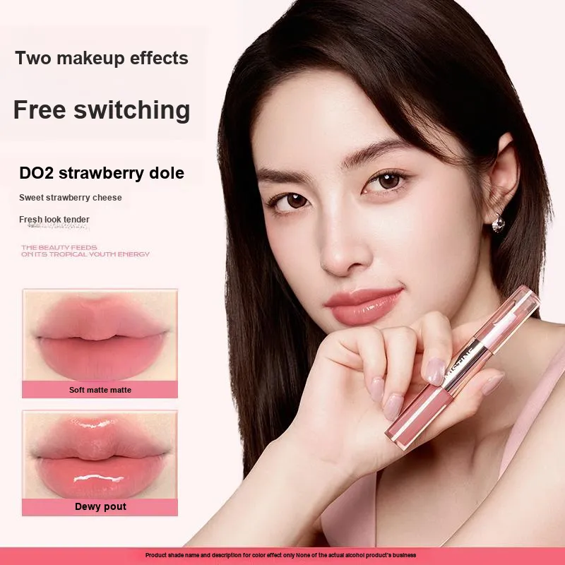 Двойная головка Жидкая помада D01+D04+Темное дерево Сладкий чай